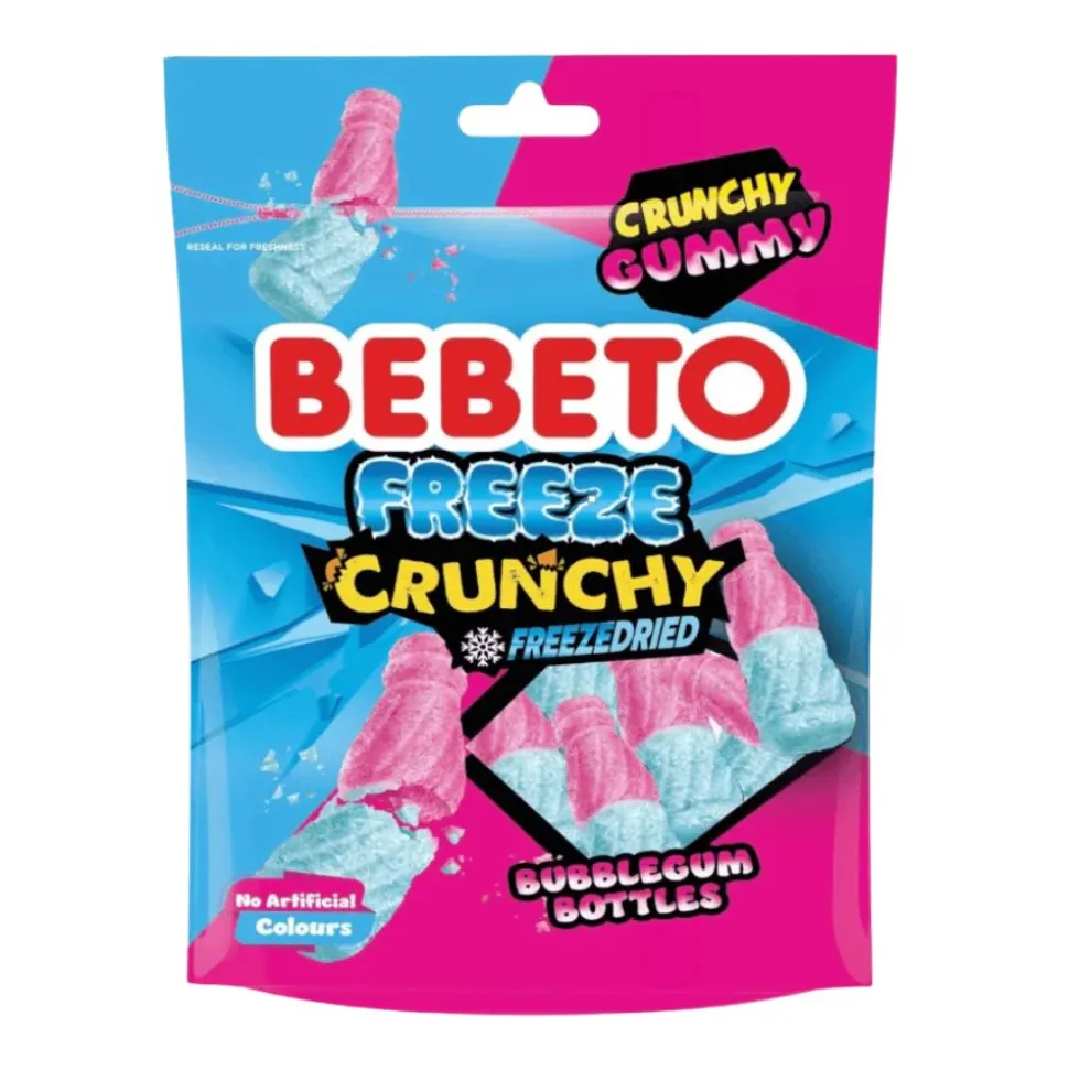 Bebeto Freeze Crunchy Gummy Freezedried Bubblegum Bottles, caramelle liofilizzate al gusto bubblegum da 35g su AmericanUncle