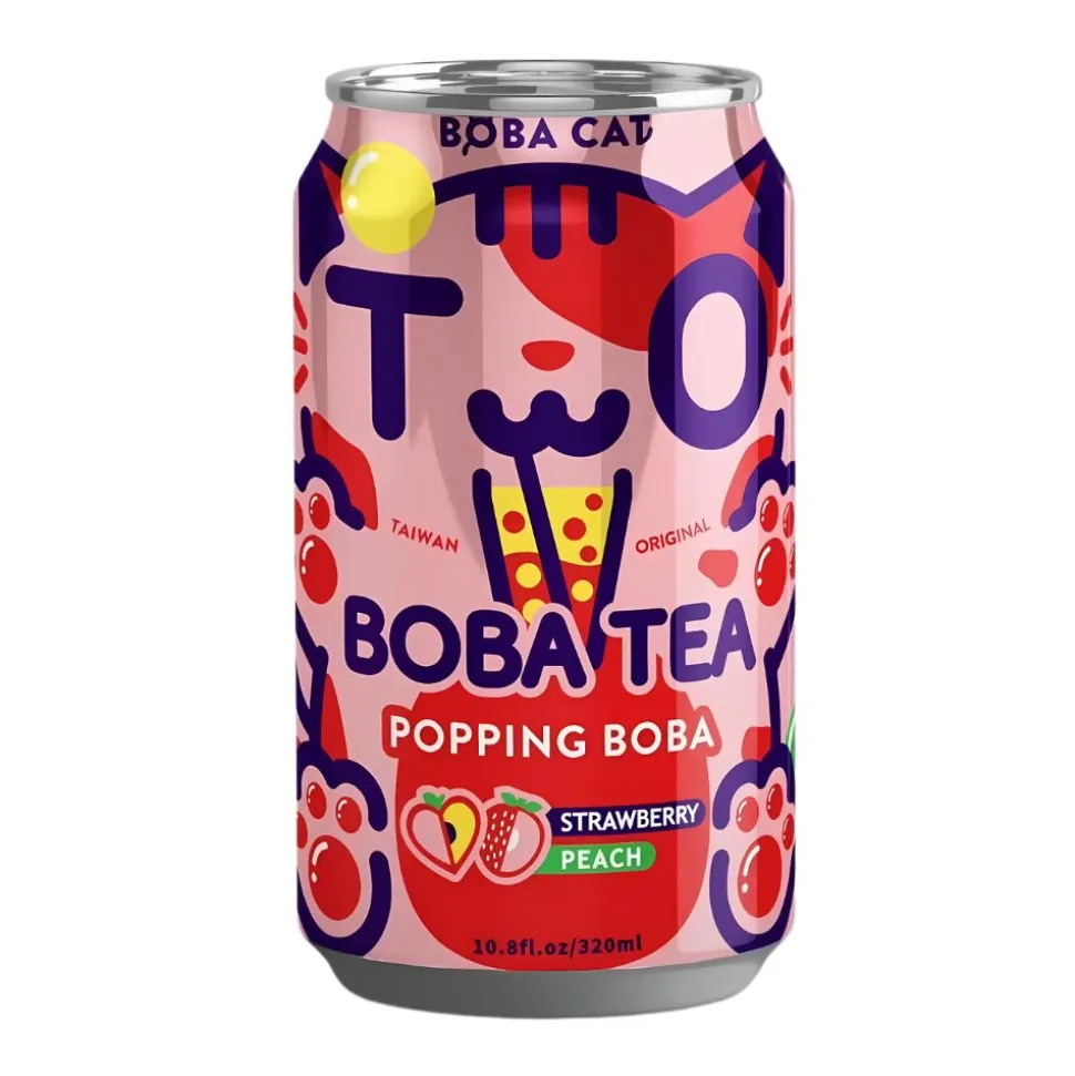 Boba Cat Strawberry and Peach, bubble tea al gusto di fragola e pesca da 320ml su AmericanUncle