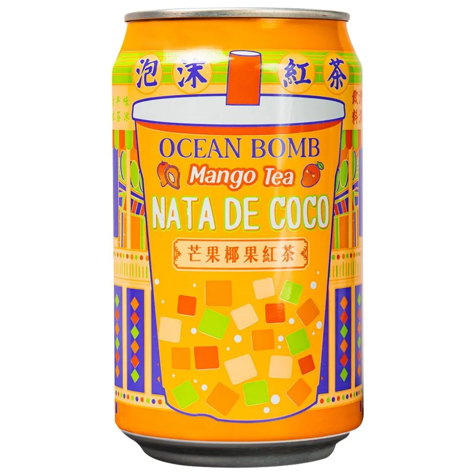 Ocean Bomb Mango Tea With Nata De Coco, bevanda di tè nero con nata de cocco aromatizzata al gusto di mango da 315ml su AmericanUncle