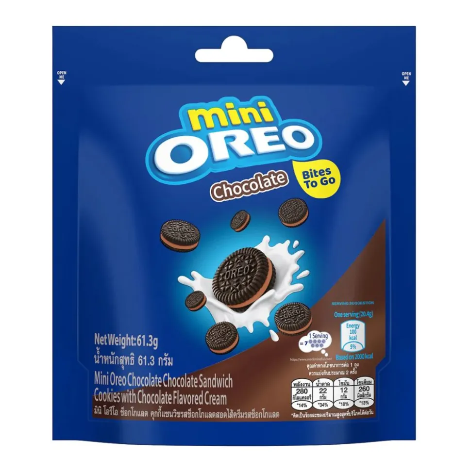 La Mini Oreo Chocolate racchiude una golosa sorpresa: piccoli biscotti Oreo con crema al gusto di cioccolato. Perfetti per chi ama unire la tradizione dei classici Oreo con un tocco extra di cioccolato, questi mini biscotti ti conquisteranno al primo assaggio. Ogni boccone è una delizia che combina il croccante dei biscotti con la cremosità del cioccolato.